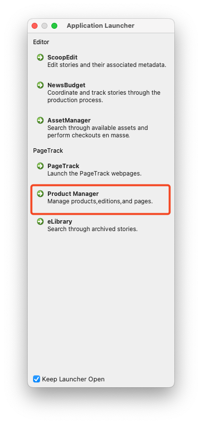 In both PageTrack and Product Manager, an issue of your publication is referred to as a “Product.”